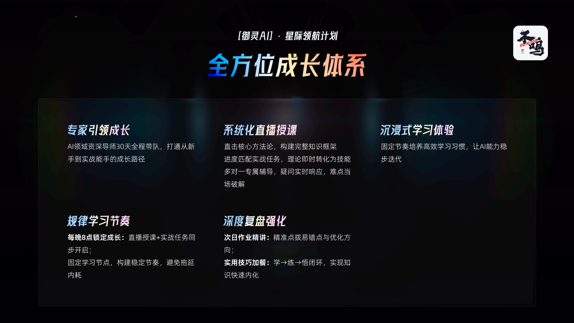 为解决上述困境,“御灵AI星际领航计划”系统性地构建了三大核心优势,确保学员能够无缝接入、高效学习并收获真实回报。