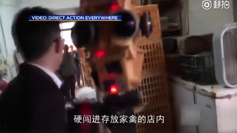 近日,在美国加利福尼亚州旧金山的唐人街,一群动物保护组织“Direct Action Everywhere”的成员围攻了一个家禽店,并试图闯进店内。尽管店主曾试图阻止,但成员们还是闯了进去,将笼子里的6只母鸡放生。他们将店铺围起来,在门口唱歌抗议,更是有人直接哭晕了过去。店主无奈之下叫来警察,最终警方以非法入侵罪逮捕了其中一名成员。事后该组织成员在接受采访时表示,“我感觉它们就像是囚犯一样被关在笼子里”