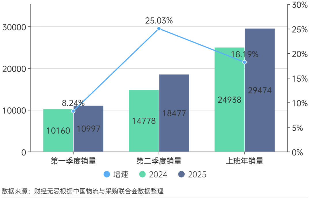 到了2025年,基建仍在继续提速,根据中国物流与采购联合会数据,2025上半年全国冷藏车销量同比增18.19%,新能源冷藏车销量暴涨119.61%。