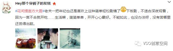 网络口碑的一路飙红,好评率爆表,可以说是在几乎没有任何宣传的情况下,凭借让人犯馋的美食、宛若清流的剧情和良心制作,吸引来一众自来水,悄无声息中达成了播放量破亿的成就,创意空间小编就是被微博首页的自来水们安利去看的。