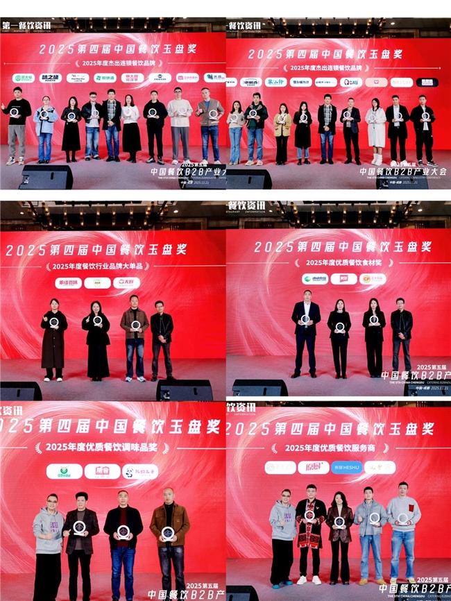 晚宴伊始,现场隆重举行了“第四届中国餐饮玉盘奖”颁奖典礼。该奖项旨在表彰餐饮行业中表现卓越的品牌与企业,鼓励行业在餐饮及供应链领域的创新探索,推动整体标准的提升,同时也为消费者发掘更多优质餐饮体验提供参考。