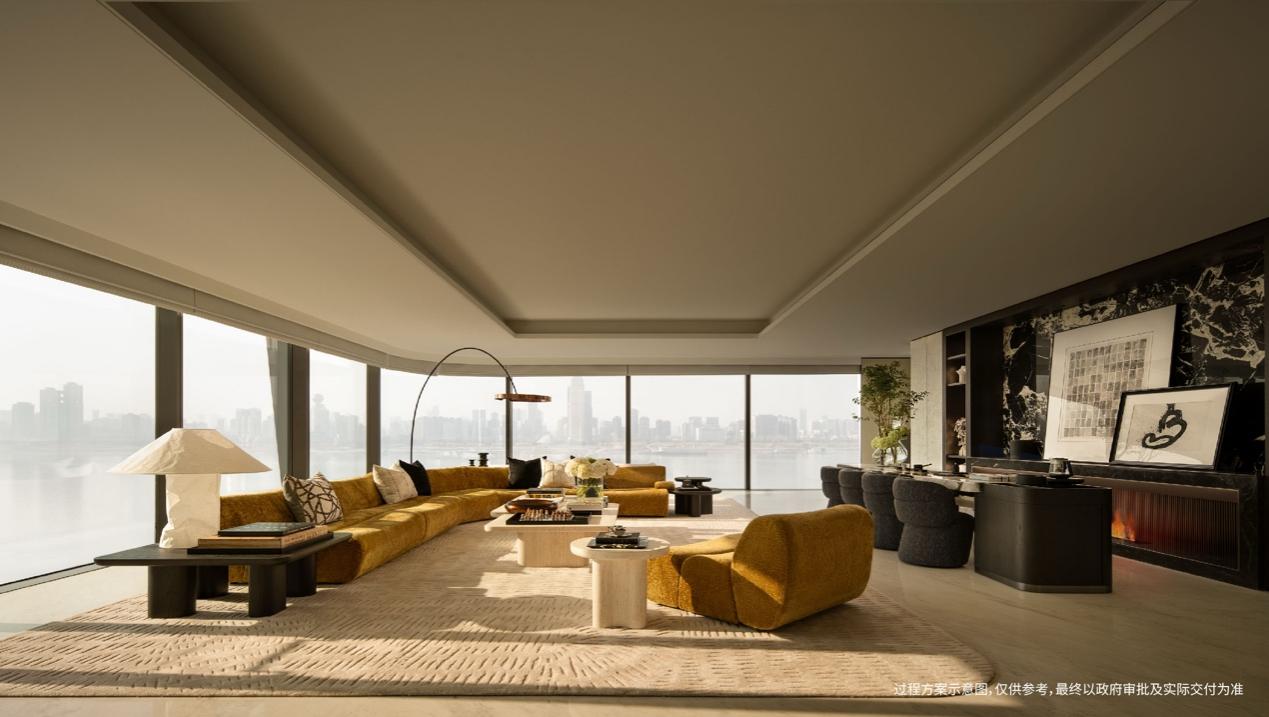 在城市中心大平层业态类目,华润置地顶序作品拒绝标准化复制,始终深度解构每宗土地的文化肌理与在地禀赋,以上海澐启滨江为例,从上海船帆文化中萃取时代表达,以“风帆群像”精神建筑塑造滨江塔冠地标;建筑立面深挖Art Deco文化精粹并予以当代转译,远观彰显当代美学张力,近赏沉淀经典风华记忆,实现文化价值与居住美学的共生。
