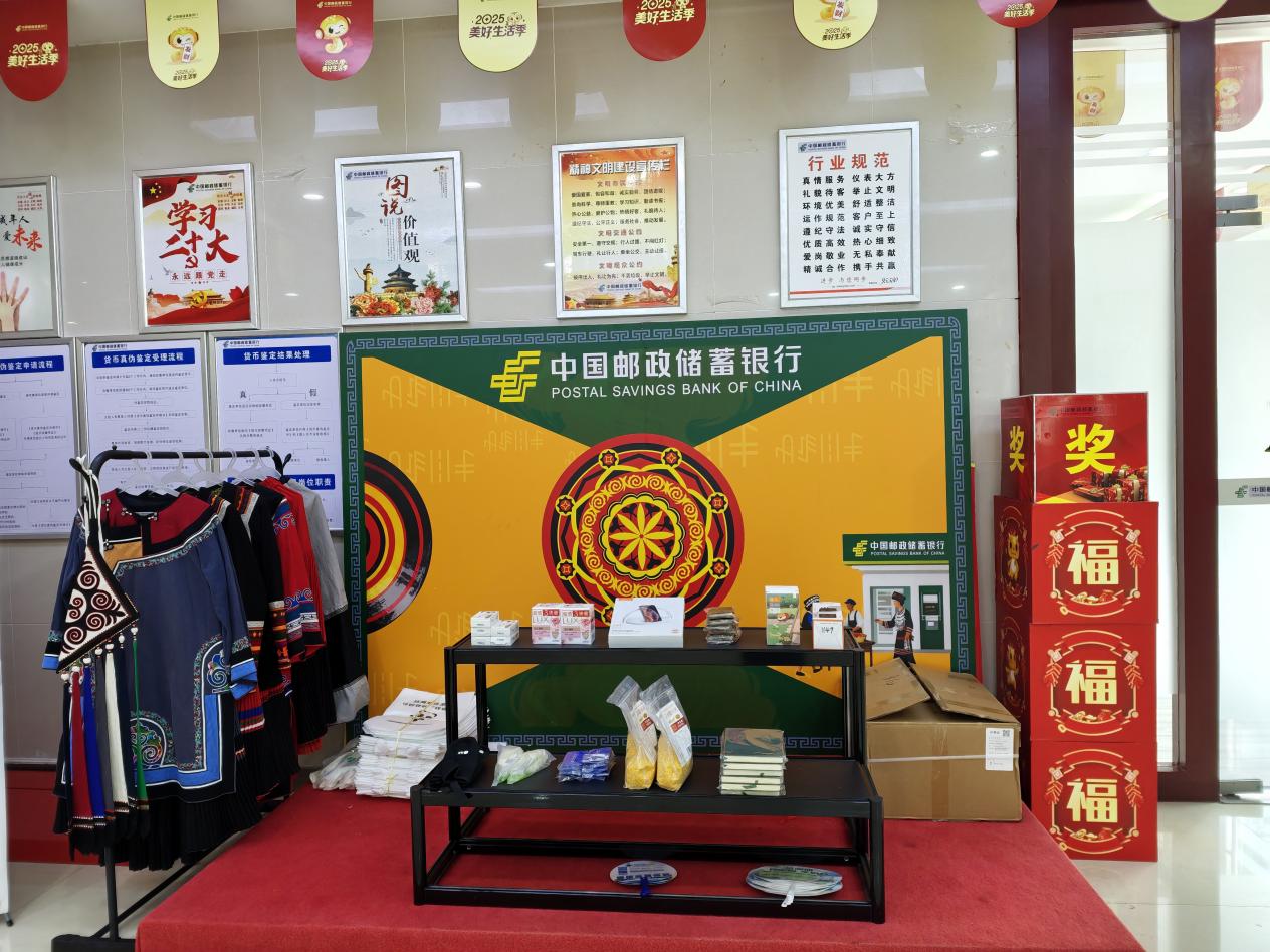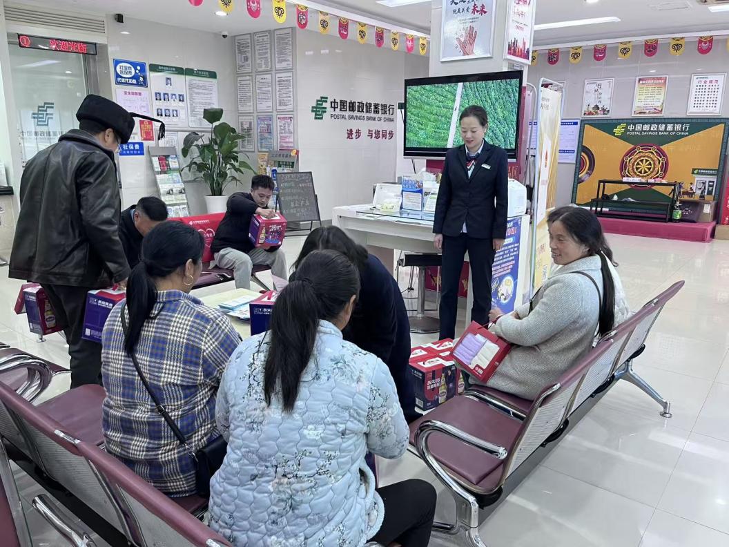 在邮储银行马边县支行网点,工作人员精心布置彝族文化展示区,通过彝绣挂饰、传统器物展示及讲解,向客户普及彝族年习俗与非遗文化。同时,结合群众生活场景,用通俗语言拆解电信诈骗、非法集资套路,讲解人民币防伪、数字人民币应用等知识,手把手指导老年客户使用手机银行,助力跨越数字鸿沟。