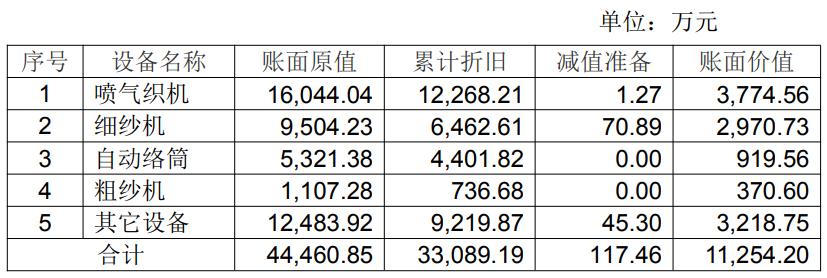 据介绍,本次拟处置资产为常山北明正定园区的纺织设备,共计1124台(套),主要包括喷气织机、细纱机、自动络筒机、粗纱机及相关纺织机械配套设备。这些拟处置设备主要在2008年至2013年购置,普遍存在使用时间较长、状态老化、型号老旧的情况。目前该批设备已处于闲置状态。