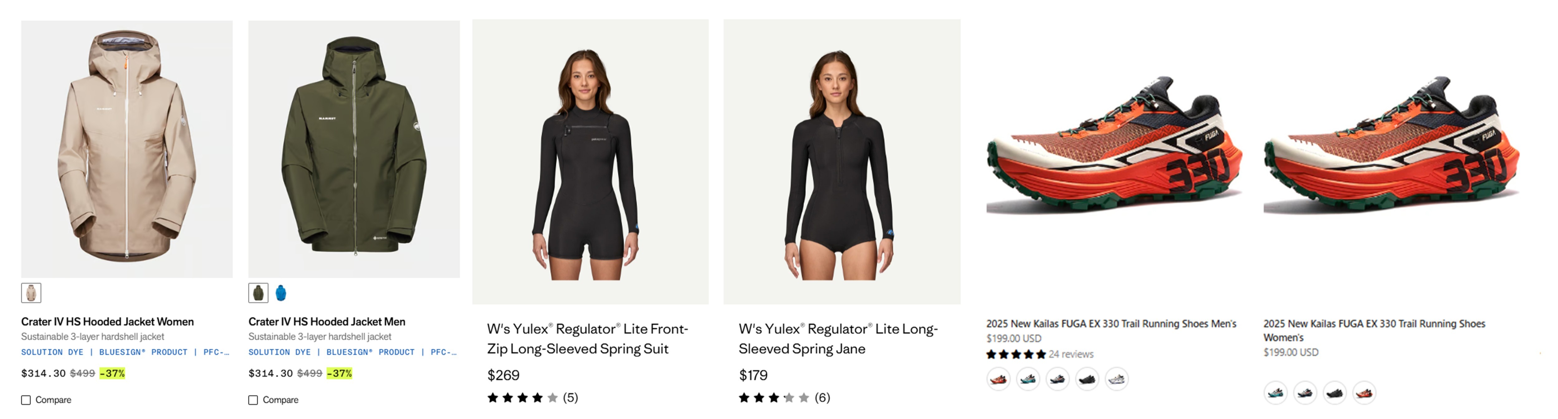 - 中高端:服务主流大众与进阶户外人需求,以北面、HOKA等品牌为主,强调户外功能与性价比的结合;