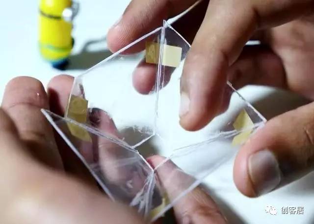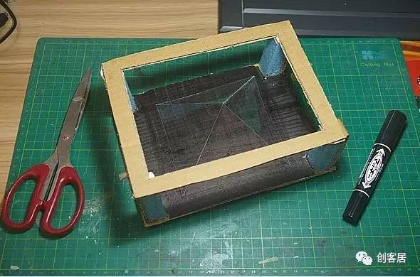 裁切完毕后将四片塑料片围起来粘好,形成一个四棱台,如下图。