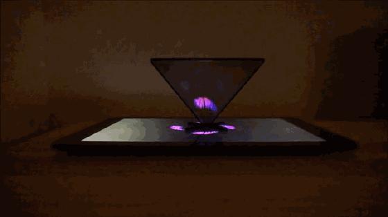 像这样的图片网上有很多,还有高级点的是以视频来体现的,这样你就可以看到动态的全息投影了。