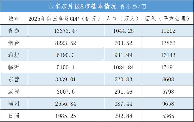 今年前三季度,东片区8市以不到山东近半人口(占比49.17%),贡献了56.83%的GDP。