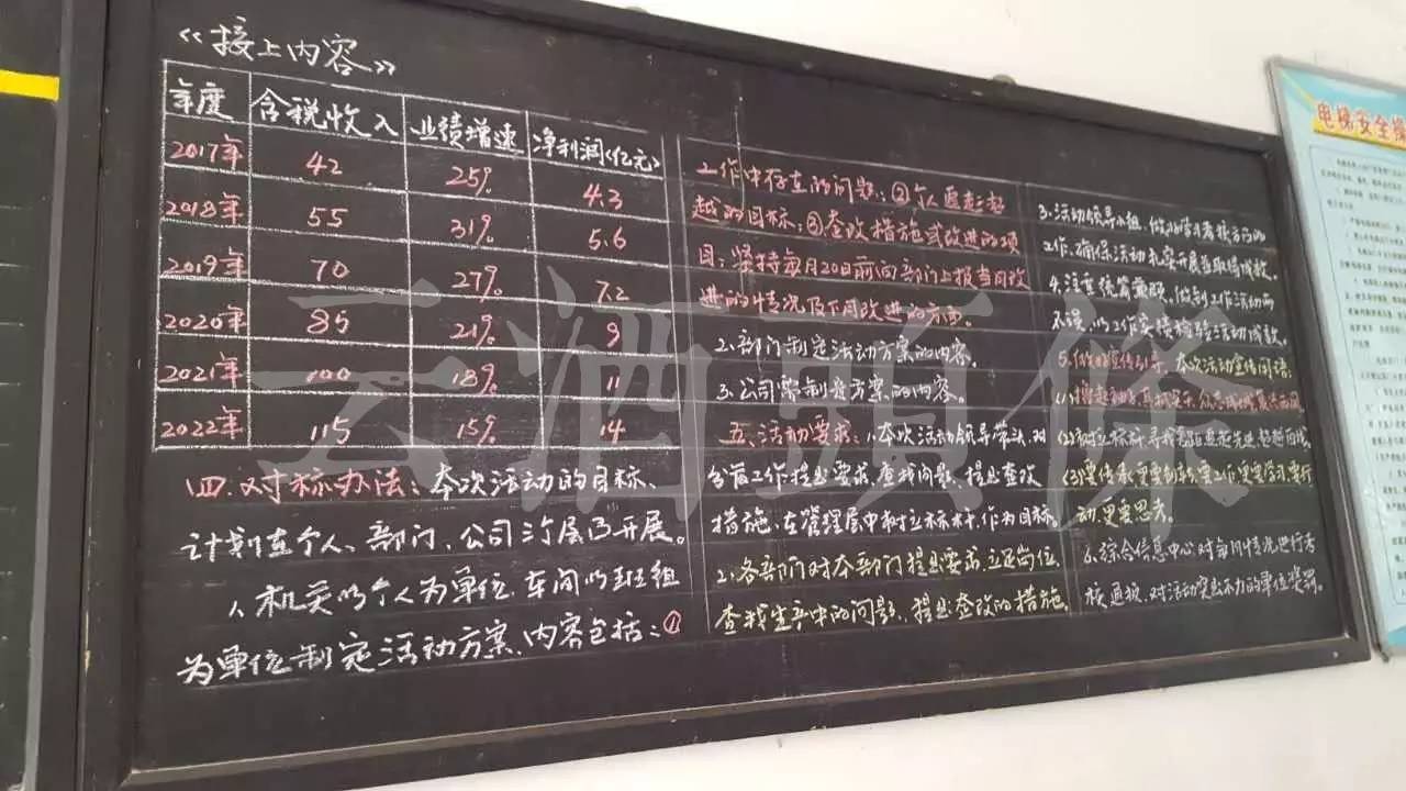 这块“黑板报”写在西凤制曲车间的醒目处,其中列明了公司逐年追赶超越的经济指标: