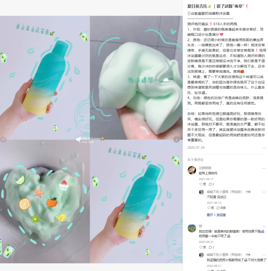 社媒平台关于三谷慕斯沐浴露使用分享帖 来源:小红书