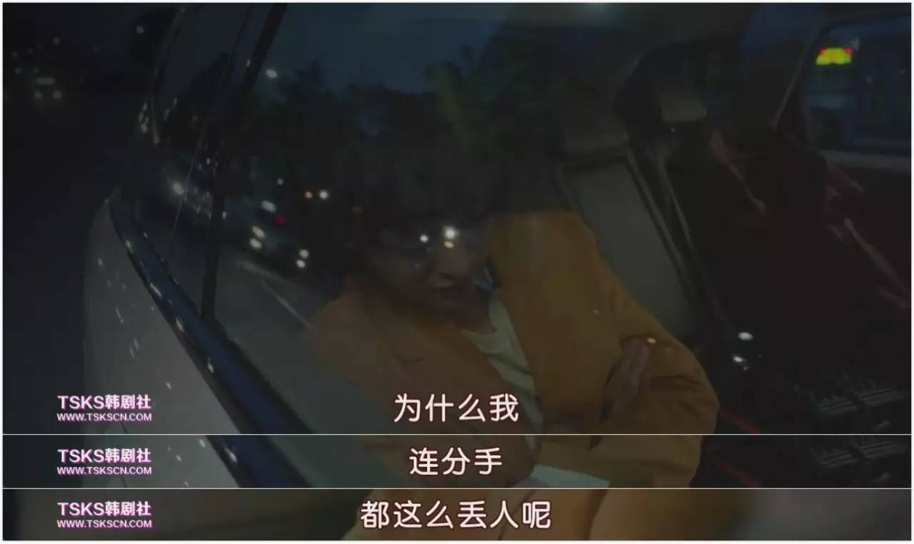 你看这一幕,崔爱拉被前男友出轨,还不得不让前男友和情妇送她回家。她缩在车后座,丧成一条狗。