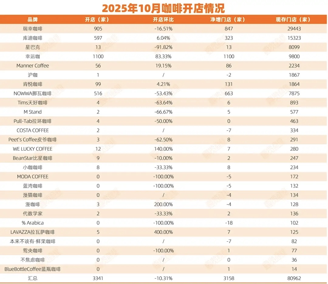数据显示,上个月,国内27家连锁咖啡品牌一共新开了3341家门店,同比增长约94%。