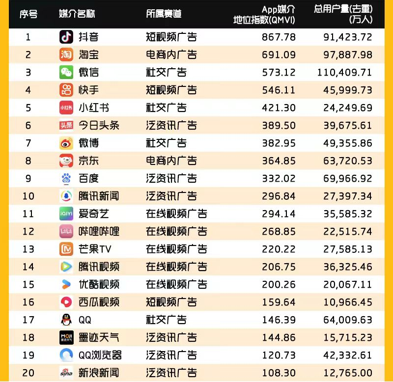 QuestMobile报告证实,2025年6月,百度媒介地位指数(QMVI)跌至第九位,排在抖音、淘宝、微信、快手、小红书后面。