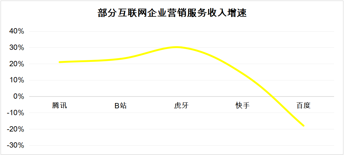 对比大盘,QuestMobile报告披露,2025年Q3,互联网广告市场规模达到1875.1亿元,同比增长了6.4%;旁观友商,腾讯、B站、虎牙、快手同期的营销服务收入分别大涨21%、23%、30%、14%。