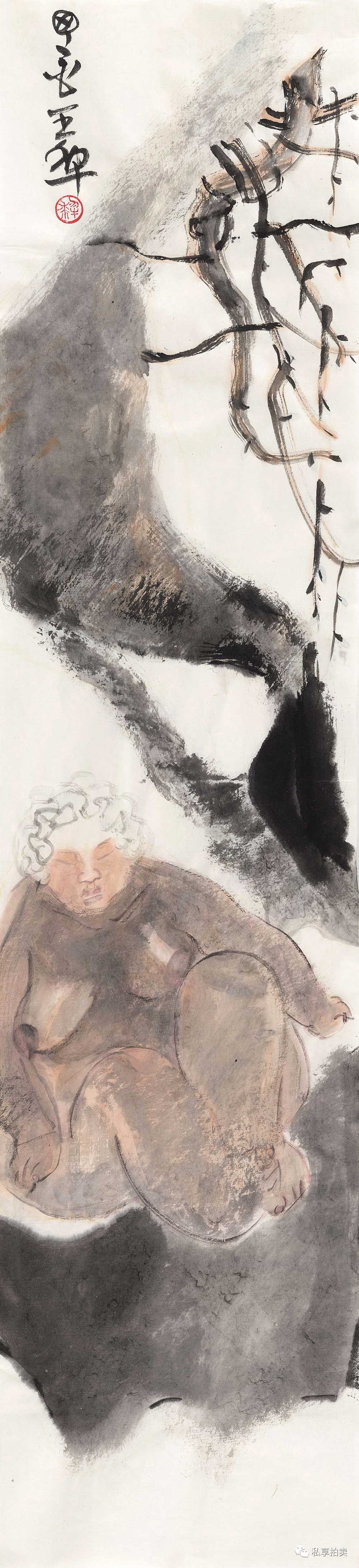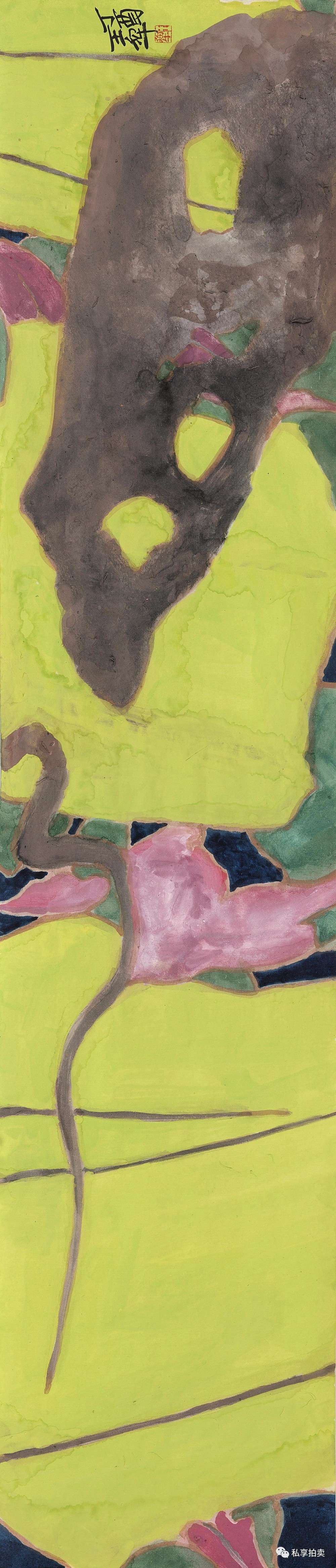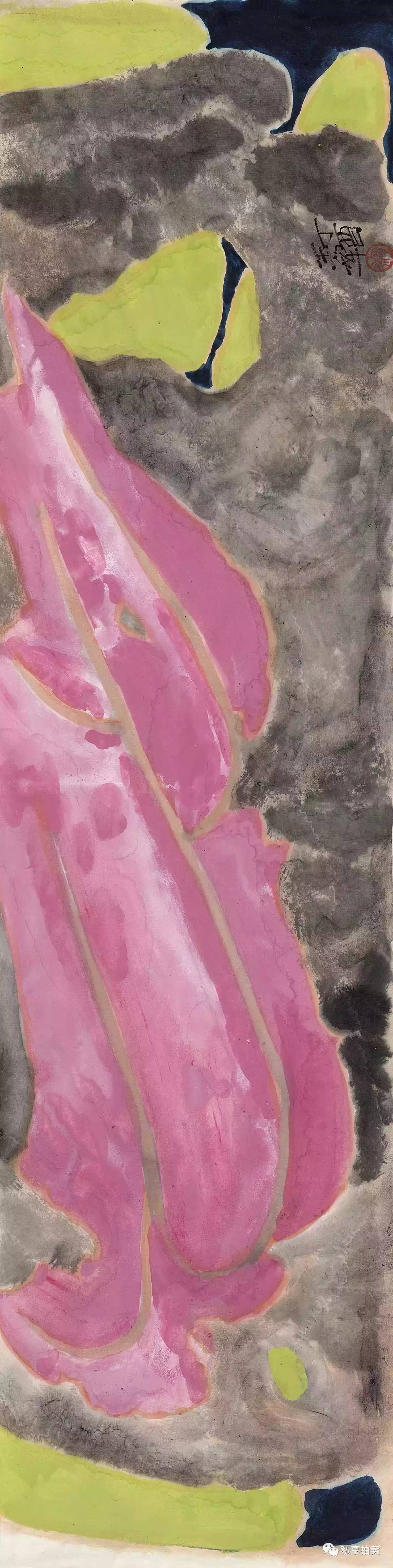 王犁 傍晚的玫瑰色(纸本彩墨) 70x34cm 2015年
