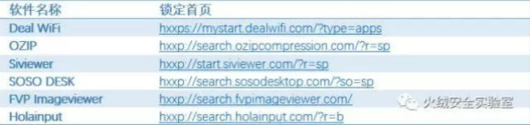 与国内一般的添加带有首页推广号的锁首方式不同,病毒插件锁定的根据安装的流氓软件不同搜索页面也不相同如下表: