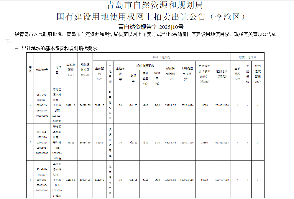 近日,青岛市自然资源和规划局发布一则土地出让公告,引发市场高度关注。位于李沧区惠水路以南、平川路以西的三宗住宅用地将以整体打包形式公开出让,总占地面积约15.8万平方米,规划建筑面积约18.96万平方米,起拍总价高达20.18亿元。