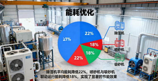 在能效管理方面,除湿机平均能耗降低22%,喷砂机与吸砂机联动运行能耗降低18%,单船能耗下降10%-25%,为企业创造了可观的经济效益。同时,设备故障率下降40%,非计划停机减少40%,返工率降低50%,年维护成本节省超200万元/企业。