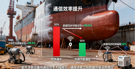 船体除锈涂装作业环节作为方案的具体应用场景,通过部署国产鸿蒙控制器,在作业效率、能效管理和核心技术自主化等方面均取得显著成效,成功构筑了基于自主技术底座的船用设备全链路管理新范式。