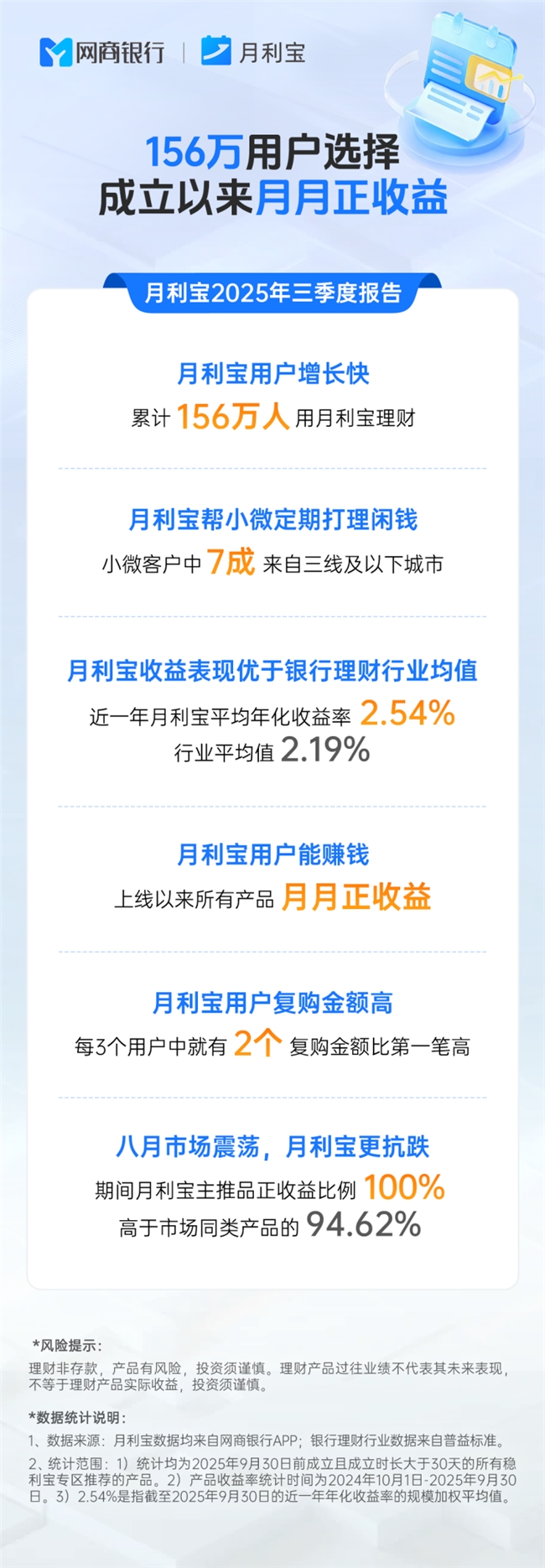小微经营者每个月趴在账上的“沉淀资金”正被有效盘活。网商银行发布的理财数据报告显示,其“月度理财”产品月利宝,累计用户已达156万,正成为小微群体打理每月闲置资金的“智能存钱罐”。