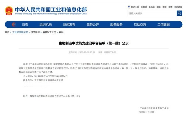 2025年11月10日,国家工业和信息化部官方网站正式发布了《生物制造中试能力建设平台名单(第一批)公示通知》。嘉必优生物技术(武汉)股份有限公司凭借其在生物制造领域深厚的技术积累、完备的中试基础设施以及卓越的产业化应用能力,成功入选该名单。这是国家对嘉必优在中试平台建设与生物制造创新能力方面的高度认可,标志着公司在该领域的领先地位得到了进一步巩固。