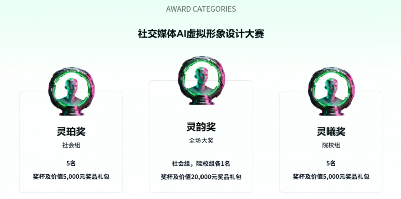 灵珀奖(社会组):5个名额,单名奖金及奖品总价值5000元;