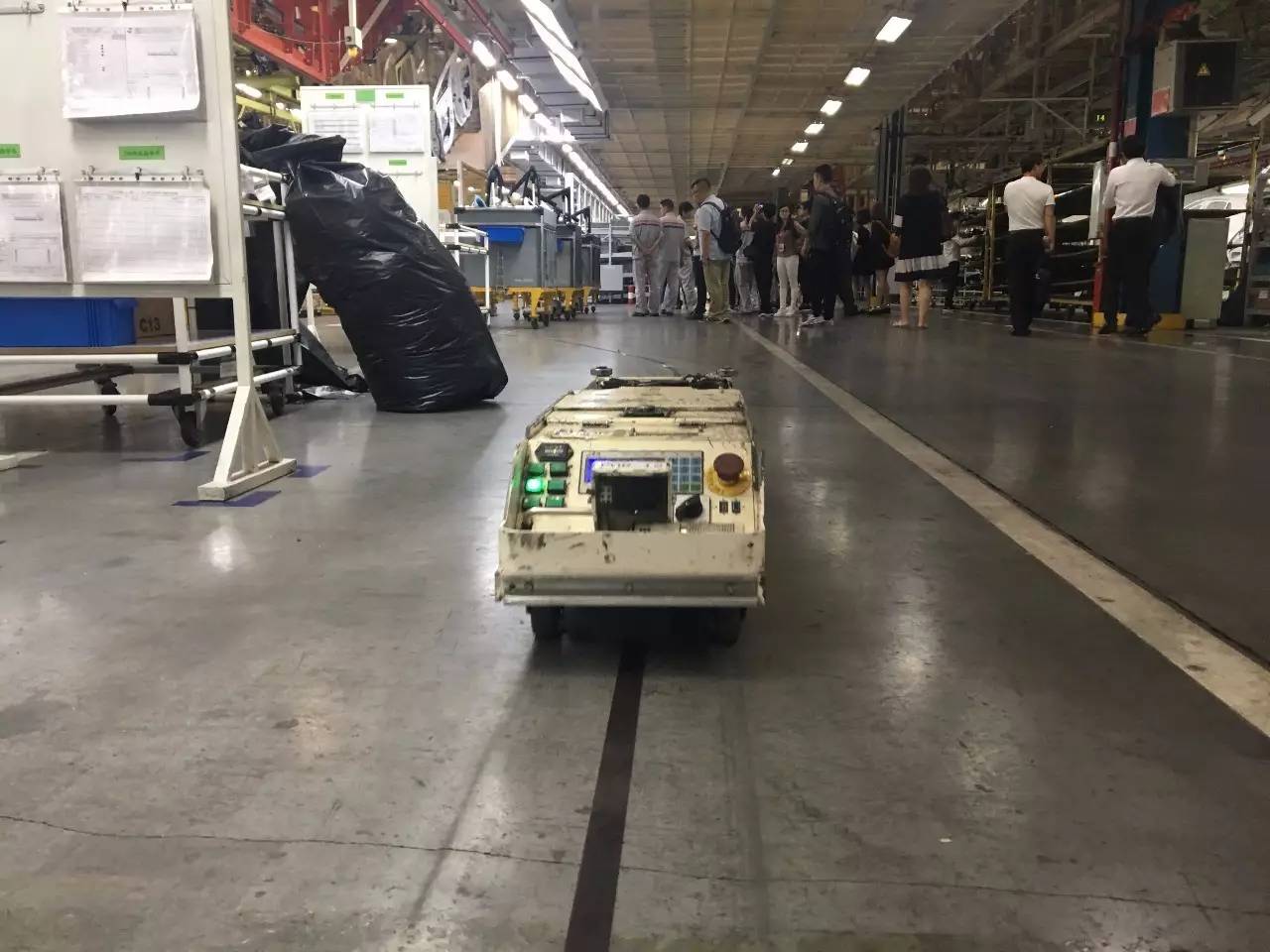 何为AGV小车?每一台AGV小车都有一个“主人”,这个主人就是在生产线上正在组装的车身,AGV小车像小火车一样沿着自己的轨道行驶,并随着主人在生产线的流动而同步流动,把主人需要安装的零配件放在自己扛起的车厢里,然后运到一个个工位上。在大多数新工厂里,已有一些新形式的流水线设备来代替它,然而它作为拟人化这么好的“萌物”,我们在参观时它如我们小时候的玩具般让人挪不开眼睛,何况它边跑还边发出一些同样具有年代感的玩具声音。