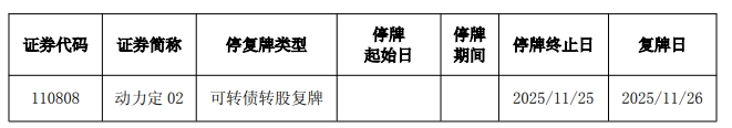 值得注意的是,因实施2025年半年度权益分派,导致中国动力可转债转股价格进行了相应的调整,在中国动力关于可转债转股价格调整暨转股复牌的公告中可以得知,自权益分派实施公告披露前一个交易日(即2025年11月18日)至权益分派股权登记日(即2025年11月25日)期间,公司可转换公司债券“动力定02”将停止转股,2025年11月26日起开始恢复转股。公司定向可转债转股价格由19.69元/股调整至19.61元/股。