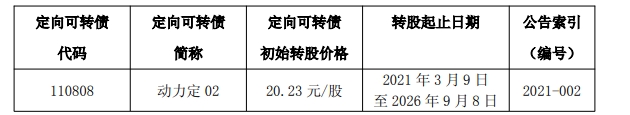 据了解,公司在2020年9月9日就已经定向发行了1500万张“动力定02”的可转债,期限为六年,发行总额达150000万元。