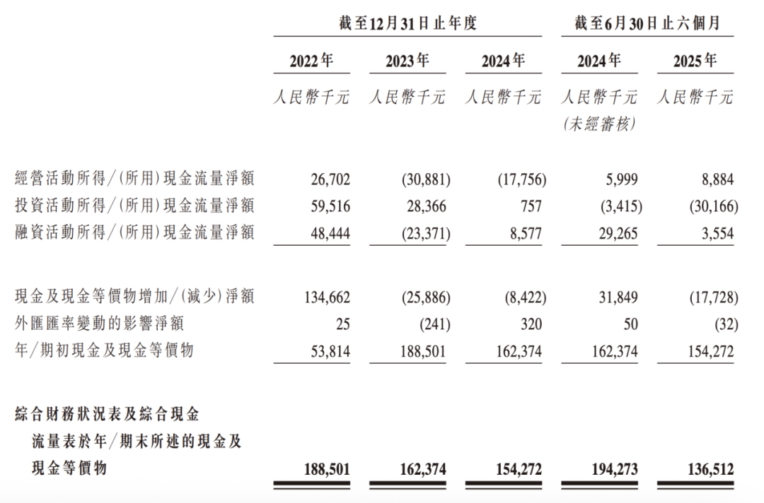 尽管2025年上半年的经营活动现金流净额已经转正,但2023年、2024年累计净流出超过4863万元,反映出卡诺普过往的盈利质量并不高。