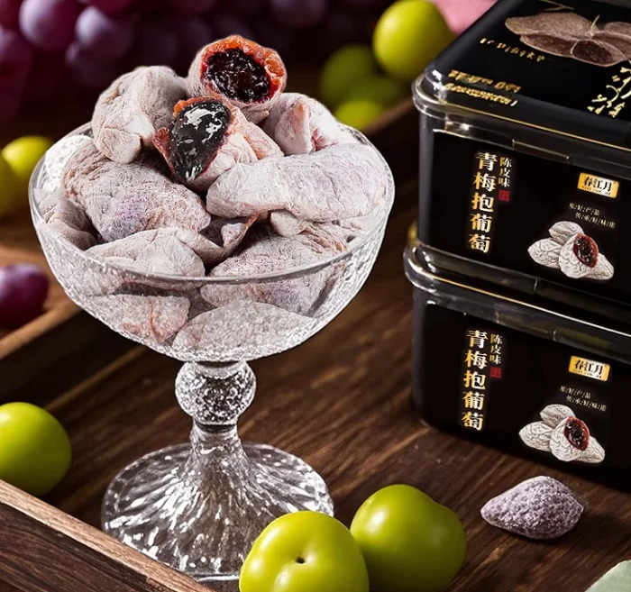 依托扎实的研发实力,春江月构建起极具竞争力的核心产品体系。健康无添加果干系列涵盖无花果干、烤芒果干、烤香蕉干等品类,以天然优质鲜果为原料,加工过程中无人工色素、香精与防腐剂添加,最大程度保留水果天然营养与风味;青梅抱系列则以品类创新突围,不仅开创陈皮葡萄梅子新品类,更凭实力成为爆款——其中青梅抱葡萄斩获全网销量第一,青梅抱芒果等口味亦广受喜爱,该系列巧妙融合青梅的酸甜与其他水果的香甜,带来层次丰富的口感,精准匹配消费者对口味创新的需求。