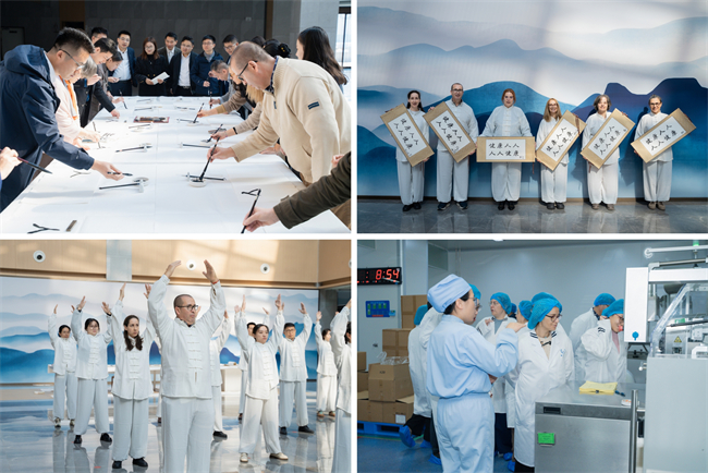 会后,一系列“大健康元年”文化体验活动将交流氛围推向高潮。双方通过集体书法共创、八段锦教学、香囊制作及车间参观等环节,将健康理念与企业文化深度融合,使葡萄牙专家亲身感受到扬子江引领健康产业的品牌实力。
