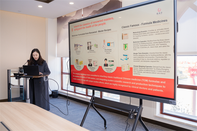 会上,集团医药经营总公司国际业务部国际注册主管金宁艳系统介绍了龙凤堂品牌的发展历程与核心产品,重点讲解了蓝芩口服液、黄芪精等产品的成分、理论依据及临床应用。其中,黄芪精凭借其道地药材品质与扎实的科研基础,赢得了葡方专家的高度关注与认可。