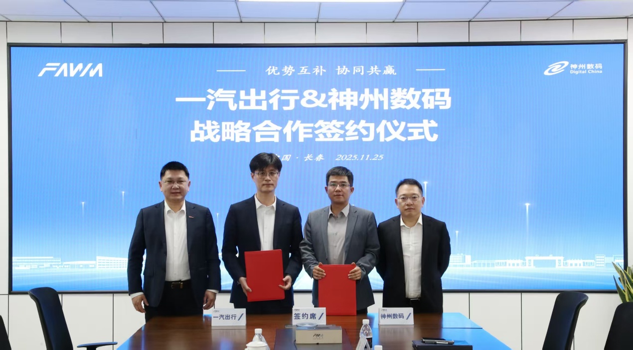 11月25日,北京神州数码云计算有限公司与一汽出行科技有限公司正式签署战略合作框架协议,标志着双方在智慧出行与数字化技术领域迈入深度协同的新阶段。一汽出行副总经理刘天水,神州数码副总裁、企业云业务集团总裁吴昊出席并见证签约仪式。