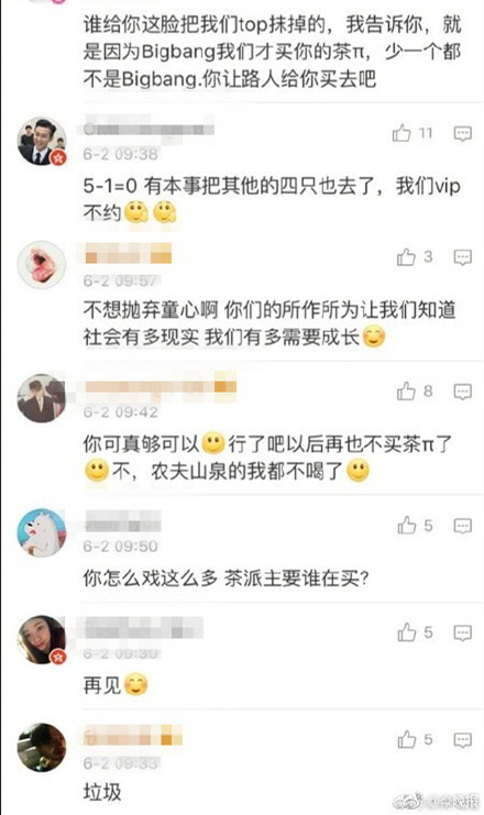 但农夫山泉却遭到了Bigbang粉丝们的围攻。