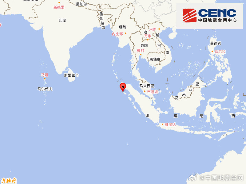 印尼苏门答腊岛北部西岸远海附近发生6.3级左右地震