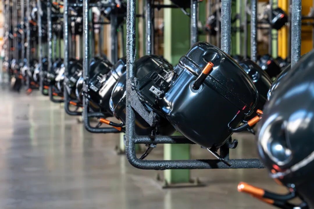 产品创新“破局”。L系列商用压缩机成为欧美冰沙机市场爆款,占据细分市场主导地位;DM 系列车载直流变频压缩机打破国外垄断,以相同冷量下的最小体积,赢得全球车载冰箱前三企业的战略合作。研发团队与供应商联合调整橡胶配方,历经几十轮测试,彻底解决车载压缩机噪音振动难题,COP值达到行业领先水平。