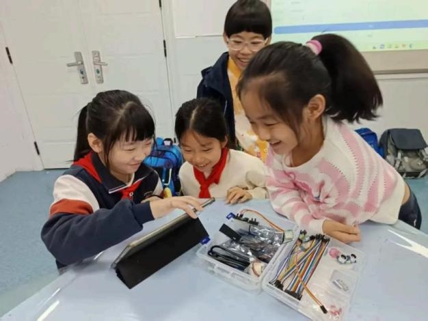 在天津市中小学全面推进人工智能教育的背景下 , 本 学 期 , 平 山 道 小 学 在 日 常 信 息 课 和 四 年 级人工智能必修课的基础上 ,推出了全新的 “ 具身智能与未来生活 ” 素拓课程。