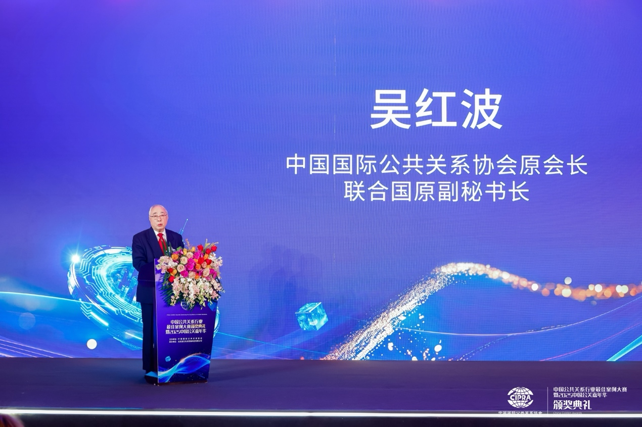 (中国国际公共关系协会原会长、联合国原副秘书长吴红波致辞)