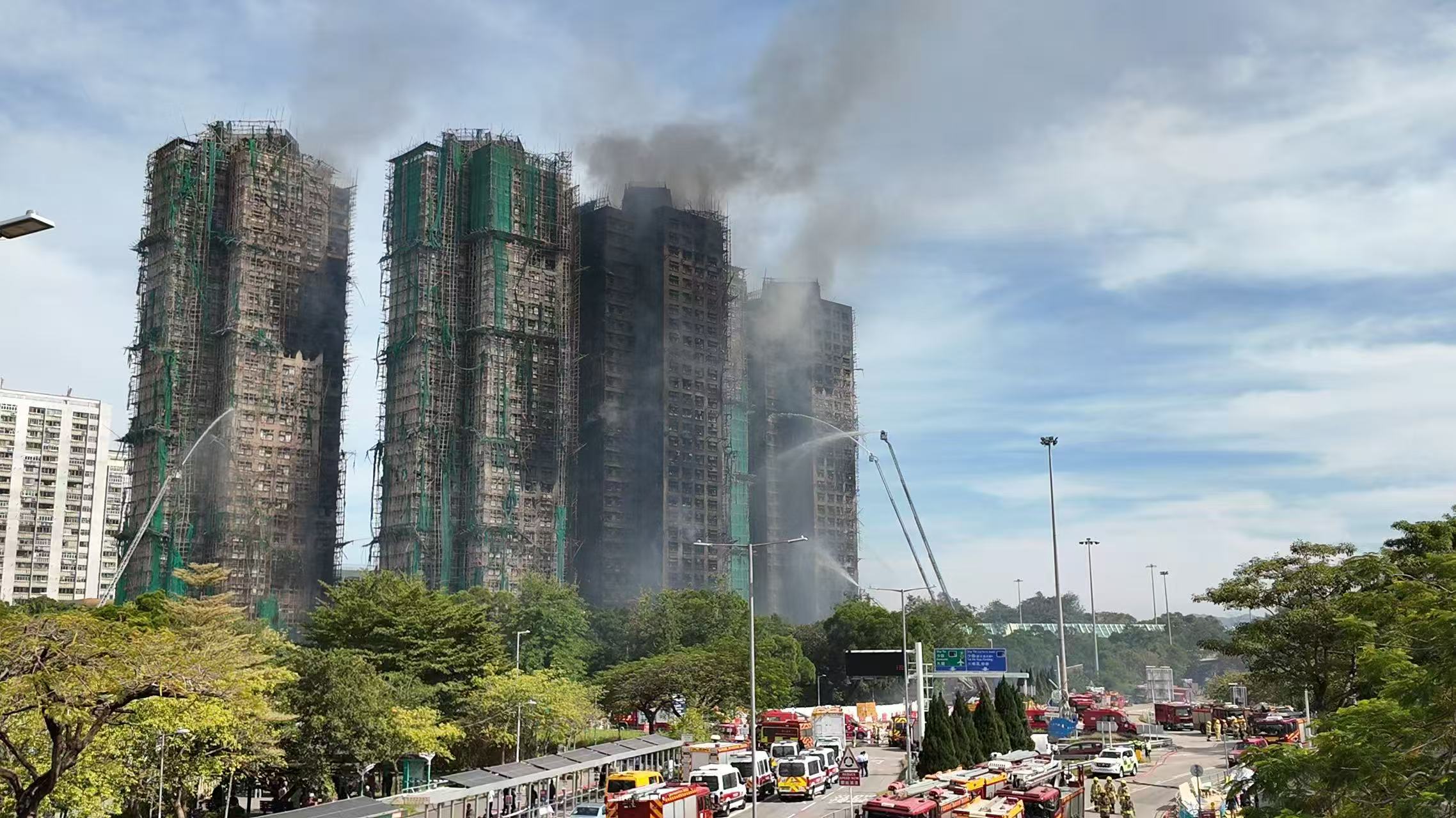 潘焯鸿特别提到,上个月中环华懋大厦发生的火灾已经是警号,“当时也是竹棚那个网在燃烧,但政府没有吸取教训”,最终酿成此次重大伤亡事故。