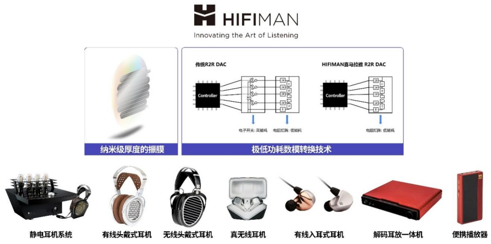 海菲曼是国内少数拥有全球影响力的高端电声品牌商,主要从事自主品牌“HIFIMAN”终端电声产品的设计、研发、生产和销售,公司产品包括头戴式耳机、真无线耳机、有线入耳式耳机、播放设备等。