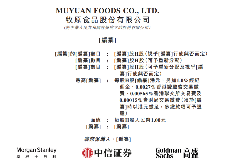 11月28日,港交所文件显示,牧原食品股份有限公司向港交所提交上市申请书,联席保荐人为摩根士丹利、高盛、中信证券。