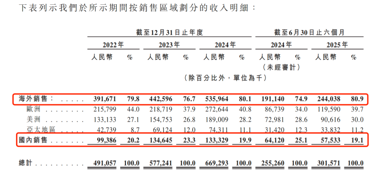 截至最后实际可行日期,公司产品出口至全球46个国家和地区,主要集中在欧洲和美洲。报告期内,鲟龙科技八成左右的收入都来自海外。