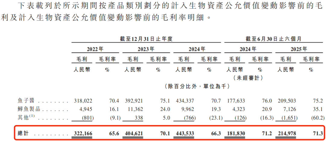 招股书显示,报告期内,公司计入生物资产公允价值变动影响前的毛利率分别为65.6%、70.1%、66.3%和71.3%。其中,鱼子酱的毛利率分别为70.4%、75.1%、70.7%和75.2%。
