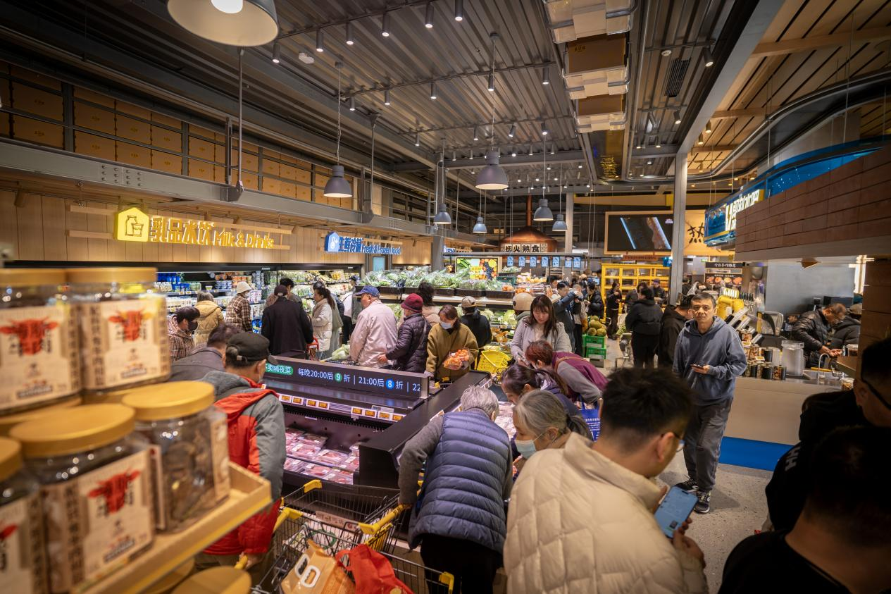 “试营业三天我来了四趟!第一天买了烤鸡和烤肠,第二天又来补了点青菜和坚果,后面还顺手带了些生鲜。趁着正式开业,特意赶早过来,再抢个新鲜!”