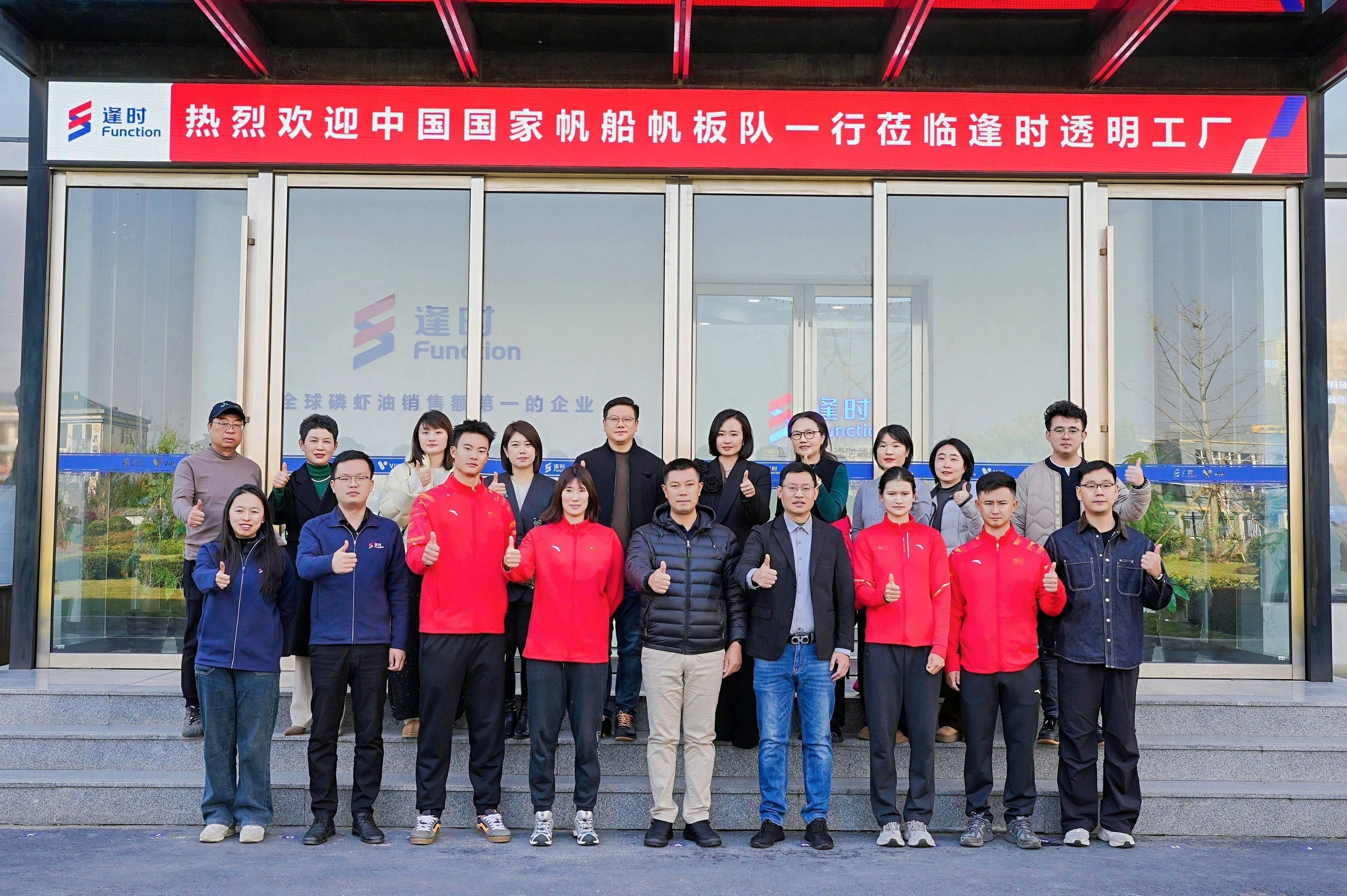 11月29日,中国国家帆船帆板队领队张锡广率第十五届全运会帆船项目女子水翼帆板级冠军闫铮、第十五届全运会女子水翼帆板季军李文琪、第十五届全国运动会帆船项目男子49人级季军丁铭良、刘添等四位中国帆船运动员探访逢时透明工厂。逢时科技作为中国帆船帆板运动协会官方供应商,与国家队一起探索运动营养的奥秘。