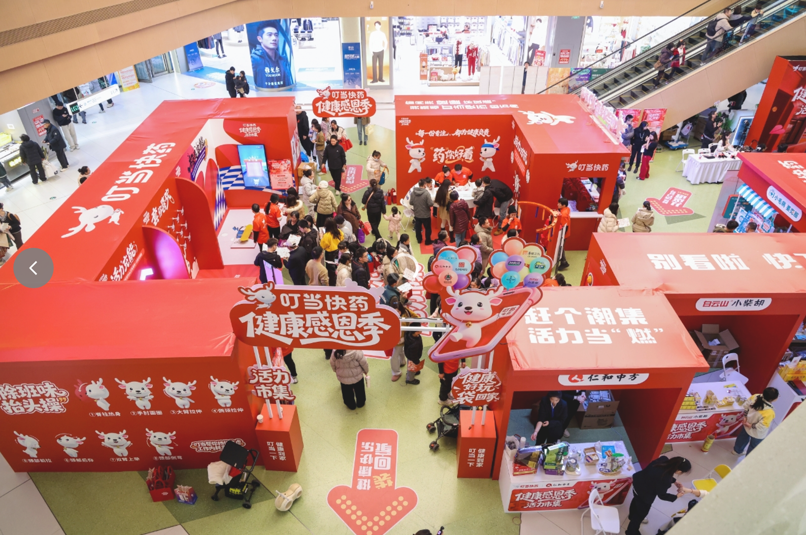 叮当健康“健康感恩季”活动现场,还汇聚了科赴中国、华润三九、东阿阿胶、白云山、迪巧、云南白药、拜耳、仁和中方、仁和药业等多家国内外知名药企,以新品发布、健康科普、互动游戏和潮玩打卡等丰富形式,打造了一场专业、有趣且互动性强的新型健康市集。