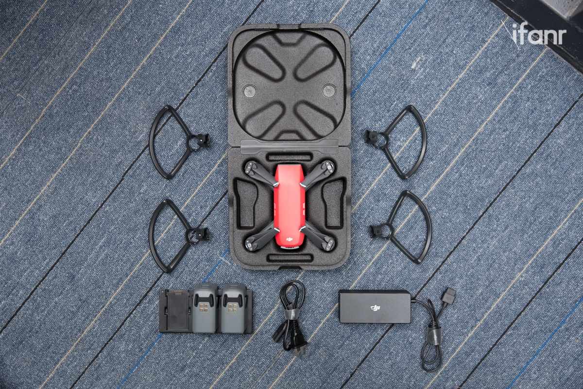 Spark 是大疆现在最便携的航拍无人机,一机三电池加上泡沫盒跟充电管家,一套下来重量不及一台精灵 4 单机,一个小背包就能轻松装完。