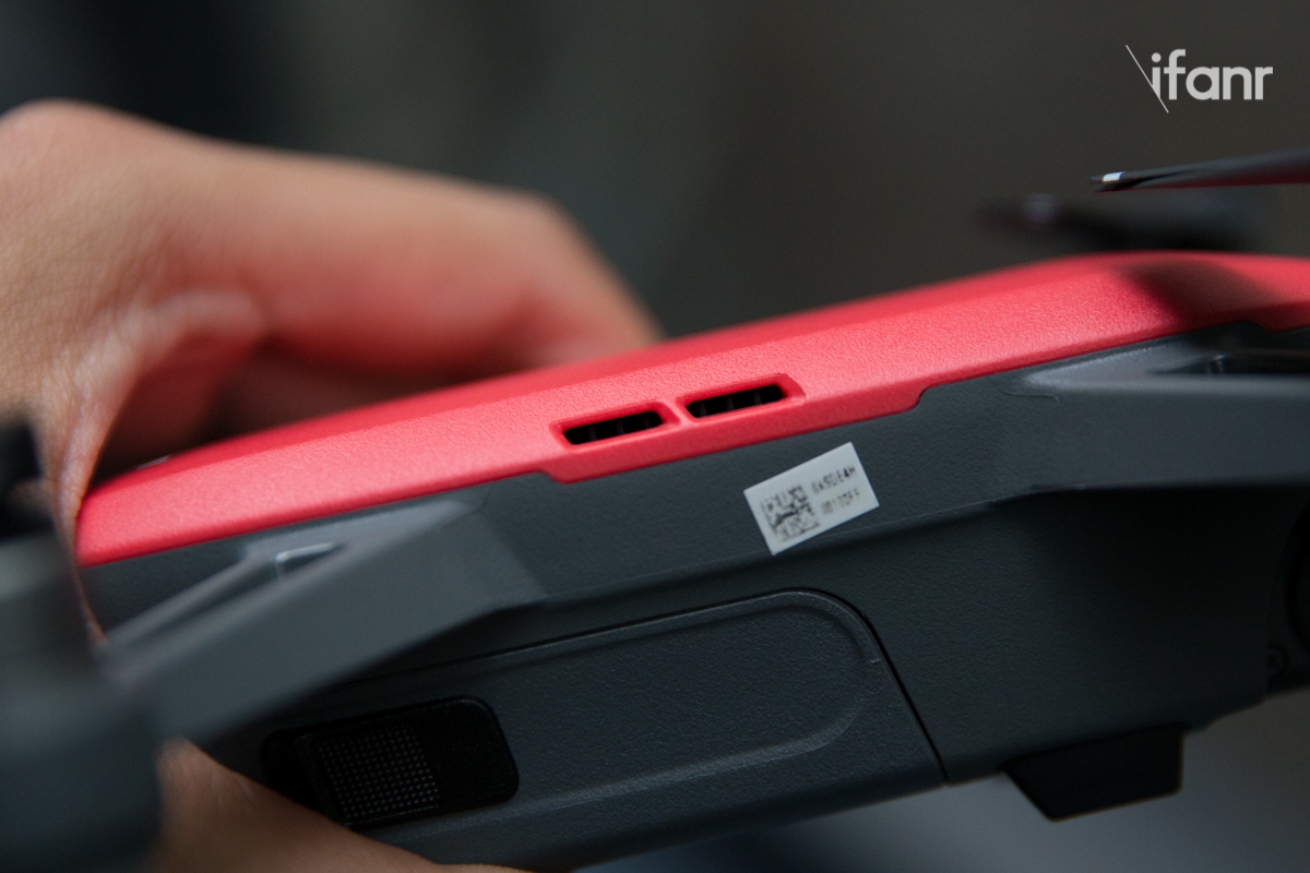 第二个就是 Spark 的散热。虽然机身很紧凑,也不像 Mavic Pro 那样可以在飞机底下弄个金属散热片,Spark 只在顶部彩壳下面设计了一个类似于笔记本电脑散热风扇的散热通道,冷风进去热风出来,这个散热效果还是不错的,即使在烈日下连续飞到没电,也不会觉得电池和飞机本体太烫手。
