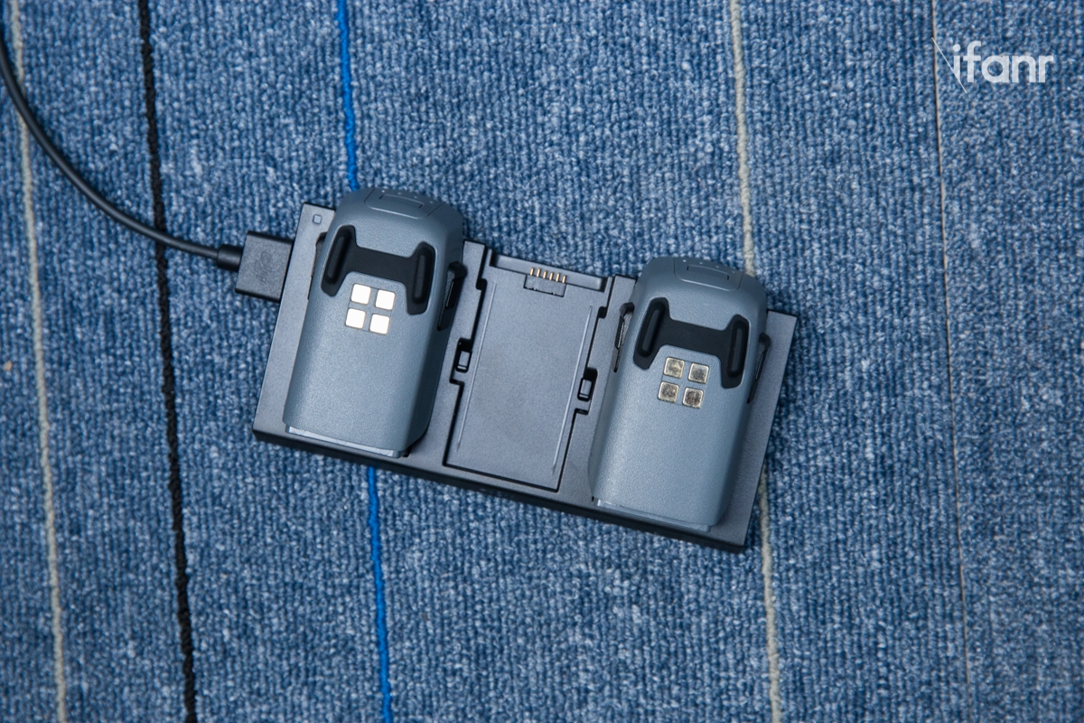 最后,Spark 还有一个隐藏得非常深的改进——充电管家。以往大疆的充电管家虽然能同时插好几块电池,但是只能按顺序给电池充电,而 Spark 的电池管家可以同时给多块电池充电,总充电时间大幅缩短。我们手上的两块电池只要 1 个小时左右就能充满电,大疆官方数据显示充电管家可以在 85 分钟内充满三块电池。